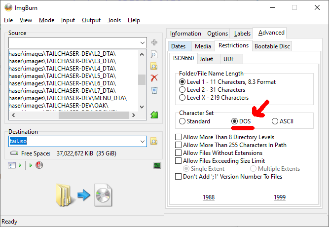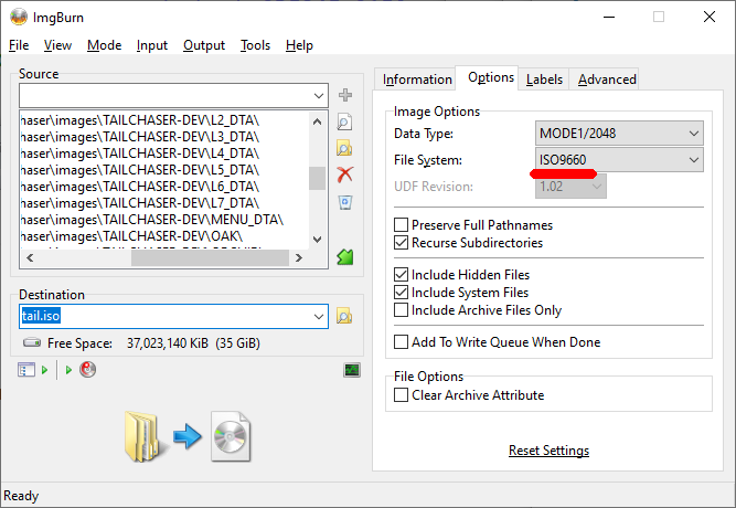 imgmount d -t iso "C:\iso\TAILCHASER-DEV.iso" d: TAIL.EXE